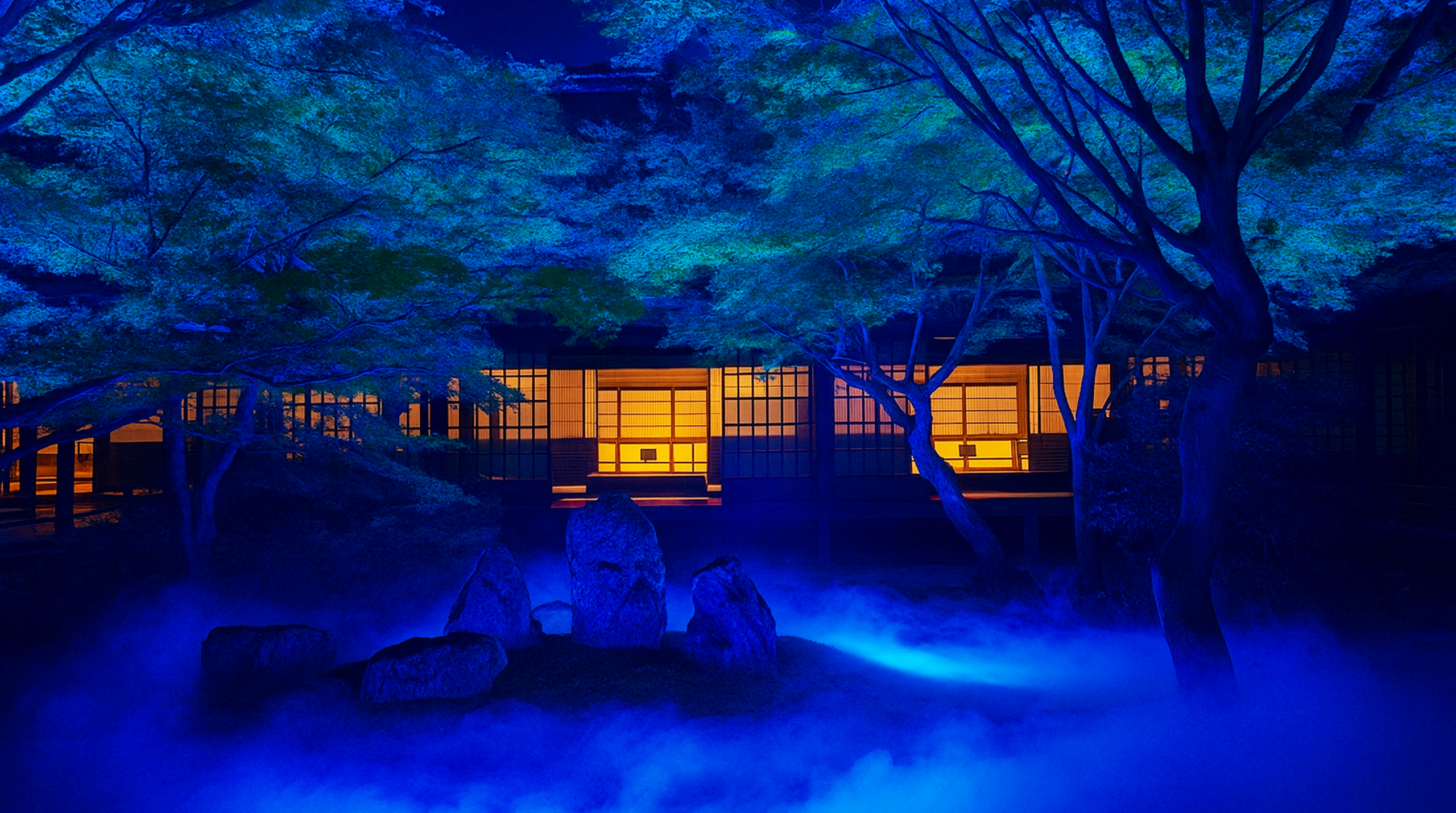 1200年の歴史を刻む静寂の空間に、最先端の映像技術が溶け込み、